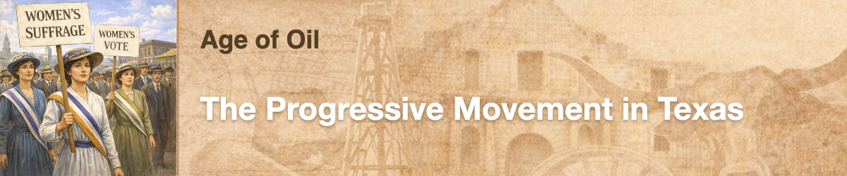 In this experience, students learn about the impact of the Progressive Movement on Texas. They focus on notable reforms in Texas: the commission form of municipal government, electoral reform, women’s suffrage, and prohibition. Objectives: