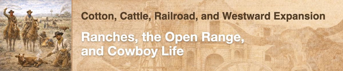 Cattle ranching was able to arise in Texas because it had open ranges. These open ranges were enormous areas of unfenced land. In this experience, you will learn how this land affected the development of Texas.