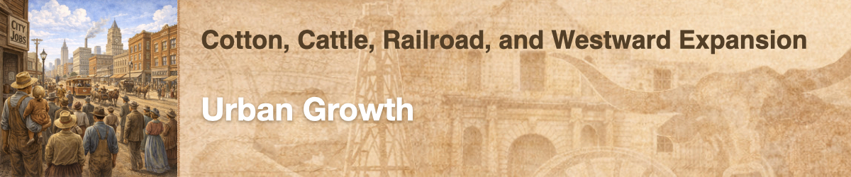 When you think of big cities in Texas, you may think of Houston, Dallas, Austin, and San Antonio, but these cities were not always so large. In this experience, you will learn why people were moving from the rural areas to the cities.
