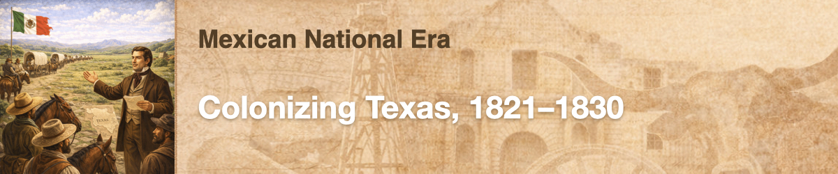 Overview In this experience, students study the factors affecting colonization of Texas during the Mexican era. They learn about the various Mexican colonization laws. Then they learn about the motivations for Anglo-American settlers to come to Texas. Finally, they learn about the role of empresarios in the colonization of Texas. Note that there are three interrelated experiences that deal with settlement of Texas in the period of 1821–1830: There are two general resources provided to students in the pack of all three experiences: a timeline of events in Texas history from 1826–1842 and a video (30 minutes). You can refer students to these resources at any point during these experiences. Objectives: