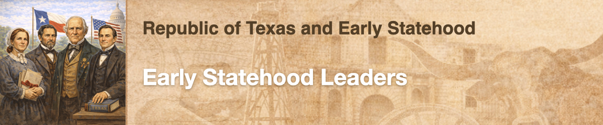 Who were some Texas leaders from the Early Statehood period? Name as many as you can. Separate them with a comma, like this: George Washington, Thomas Jefferson.