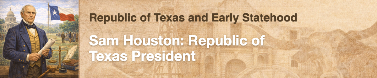 In 1836, Texas held its first presidential election for the new nation. Three men ran for office: Stephen F. Austin, Sam Houston, and Henry Smith. Although all three men were famous across Texas, Houston was the most popular. His nickname was “Old Sam Jacinto,” in honor of his victory at the Battle of San Jacinto.