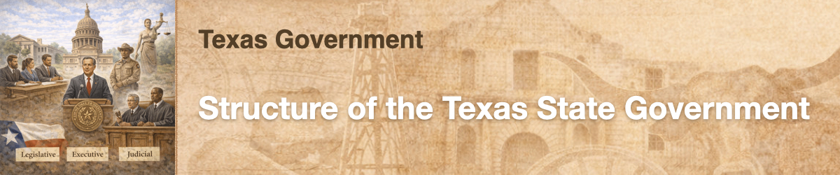 The Texas Constitution separates the powers of the state government into three branches: legislative, executive, and judicial. Each of the three branches of government is part of a system of checks and balances. This system allows each branch to confirm or veto acts of another branch to prevent any one branch from exercising too much power. In this experience, you will learn about the structure of each of these branches.