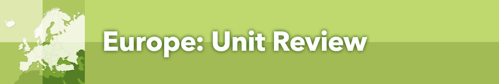 Here are the teacher pack items for Europe: Unit Review I: