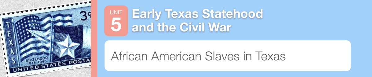 As Texas grew, so did the number of enslaved African Americans. By 1850, the number of slaves was over 58,000 and by 1860 that number rose to over 180,000. At that time, nearly one-fourth of the families in Texas owned at least one slave. In this experience, you will learn about slavery in Texas.