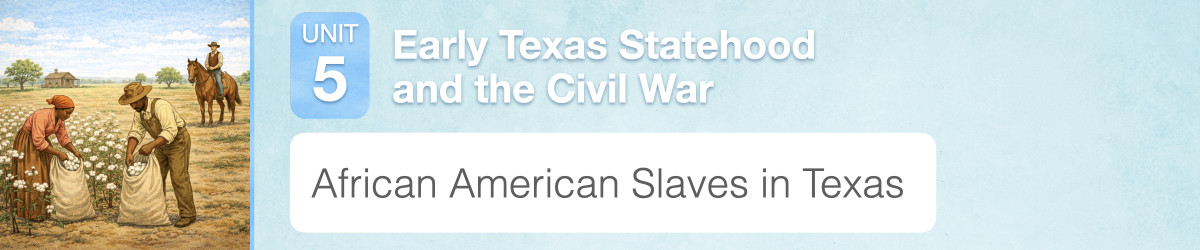 As Texas grew, so did the number of enslaved African Americans. By 1850, the number of enslaved people in Texas was over 58,000 and by 1860 that number rose to over 180,000. At that time, nearly one-fourth of the families in Texas enslaved at least one person. In this experience, you will learn about slavery in Texas.