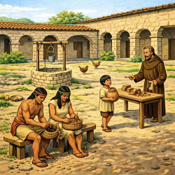 Students brainstorm buildings included in a mission compound. Then they learn about the physical structure of a mission, including the role of the church and the irrigation system. Next they watch a video about new skills learned by the Indians in the missions and they read about the missions’ role in Texas ranching. Finally they write two diary entries—one from the viewpoint of a friar and one from the viewpoint of an Indian.