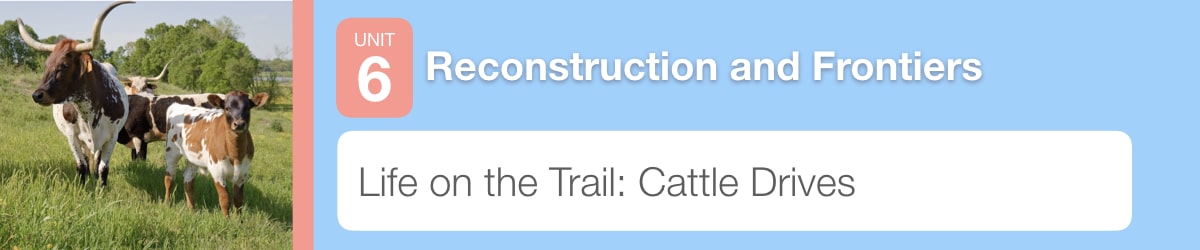 In the last lesson you learned about the development of ranching in Texas. In this lesson, you will learn how the cattle were sent to market and the impact of the cattle industry on Texas.