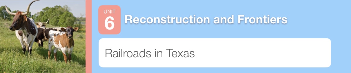 The construction of railroads contributed to the economic growth of Texas as they brought people, new businesses, and new towns across the state. The first tracks were laid before the Civil War, but the most significant growth of Texas railroads happened after the war. In this lesson you will learn how railroads helped change life in Texas.