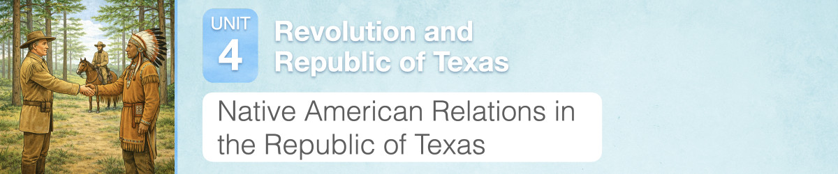 As Texas settlements grew, many Anglo-Texan settlers moved onto the homelands of Indigenous peoples. This led to conflict because Indigenous nations were trying to protect their land and communities, and many settlers wanted Indigenous people forced to leave. In this lesson, you will compare the different approaches of the first two presidents of the Republic of Texas, Sam Houston and Mirabeau B. Lamar. One approach focused more on peace and treaties, and the other relied more on removal and military force.