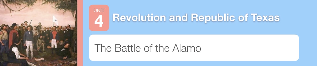 Following the Battle of Gonzales, the Texan Volunteer Army organized and had several victories over the Mexican Army. In most of these battles, the Texans had surprise on their side because Mexico did not yet take the threat seriously. President Santa Anna was unhappy with his army’s losses to this rag-tag army, so he personally took over as commander of the Mexican troops that marched to regain the fort at San Antonio de Béxar. In this experience, you will learn about this Battle of the Alamo and about the men who gave their lives there in the name of Texas independence.