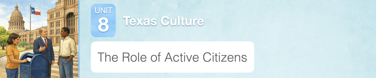 Overview In this experience, students name the four Texans who have served as U.S. president. Then they learn about three civic organizations and people who have been active in them. Next they learn about three Texans who participated in politics. Finally they identify current officials and how to contact them. If you have access to leveled readers that include biographies of any major Texas civic or political leaders, assign them to the students in parallel to this experience. Estimated duration: 50-60 minutes, unless you want to include having students actually contact one of the officials Vocabulary words: Objectives