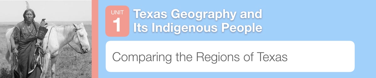 Texas is divided into four regions—the Mountains and Basins, the Great Plains, the North Central Plains, and Coastal Plains. The regions are determined by the physical geography, such as landforms, climate, and vegetation. You have learned about the regions in this unit. In this experience, you will summarize what you have learned so far.
