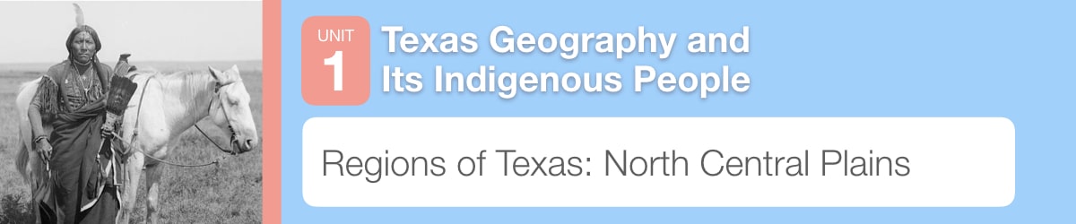 Texas is divided into four regions—the Mountains and Basins, the Great Plains, the North Central Plains, and Coastal Plains. The regions are determined by the physical geography, such as landforms, climate, and vegetation. In this experience, you will learn about the North Central Plains.