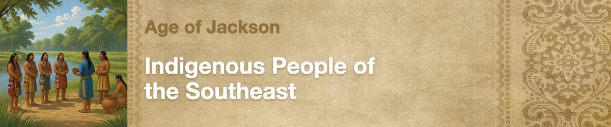In this experience, you will learn about the Cherokee, Chickasaw, Choctaw, Creek (Muscogee), and Seminole Nations. You’ll explore what these nations shared, what made each unique, and how they built and organized their communities. You’ll also investigate how they made important decisions about their lands, governments, and cultures as the United States expanded into their homelands.