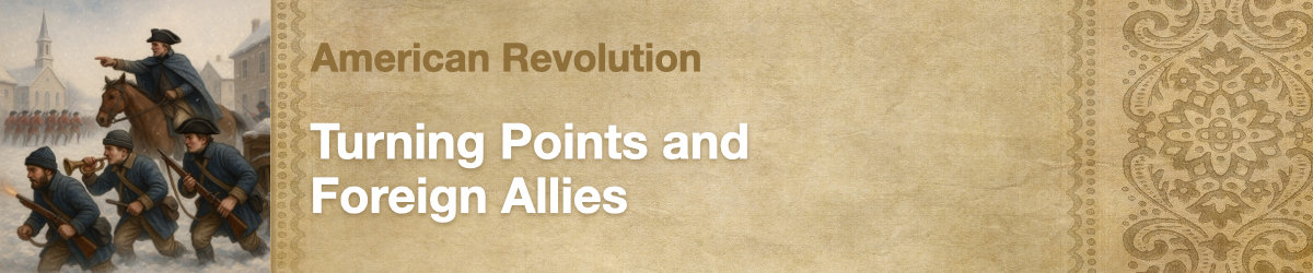 In this lesson, you will learn how turning points in the American Revolution, including help from foreign allies, changed the direction of the war and brought new hope to the Continental cause.