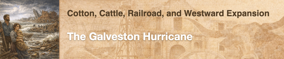 In this experience, students learn about the devastating Galveston Hurricane of 1900. They identify the effects that the storm had on the city and its economy, and why the storm was so devastating. They read some letters written from survivors of the storm and then write a letter of their own, including information about the storm. Students will collaborate in small groups for scene 2 and scene 3. Note that the change in city government adopted by Galveston following the hurricane is covered in the experience The Progressive Movement in Texas. Objectives: