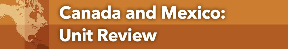 Here are the teacher pack items for Canada and Mexico: Unit Review: