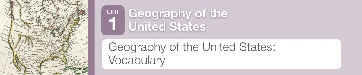 Overview In this experience, students interact with vocabulary words that they will encounter throughout Unit 1: Geography of the United States. Estimated duration: 30–40 minutes Objective