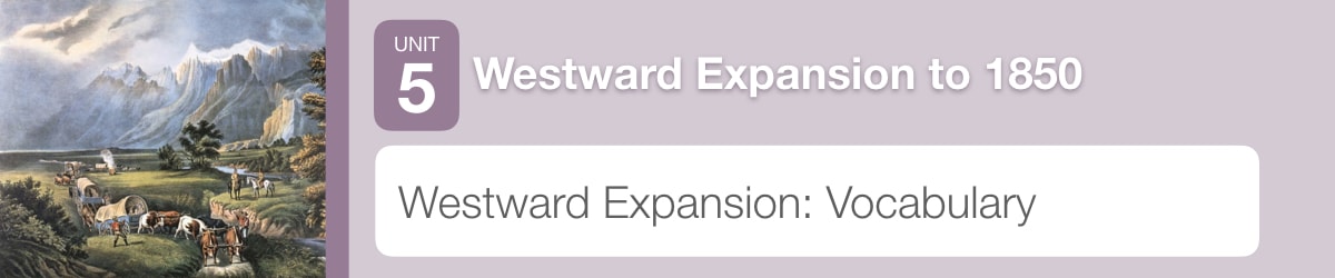 Overview In this experience, students interact with vocabulary words that they will encounter throughout Unit 5: Westward Expansion to 1850. Estimated duration: 30–40 minutes Vocabulary words: Objective