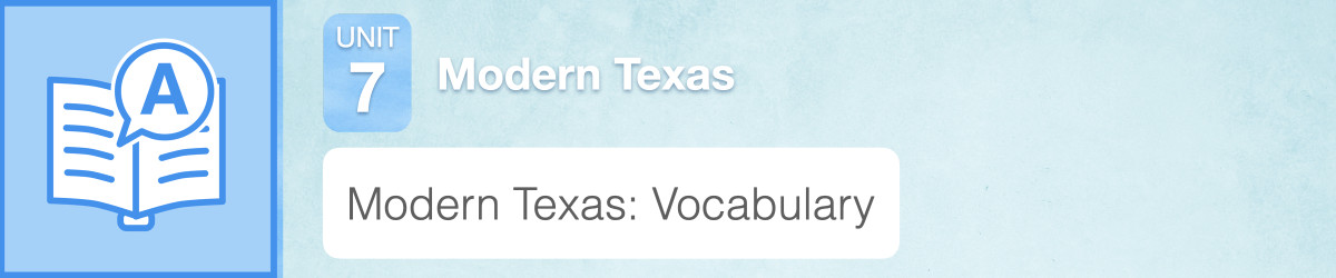 Overview In this experience, students interact with vocabulary words that they will encounter throughout Unit 7: Modern Texas. Estimated duration: 30 minutes Vocabulary words: Objective
